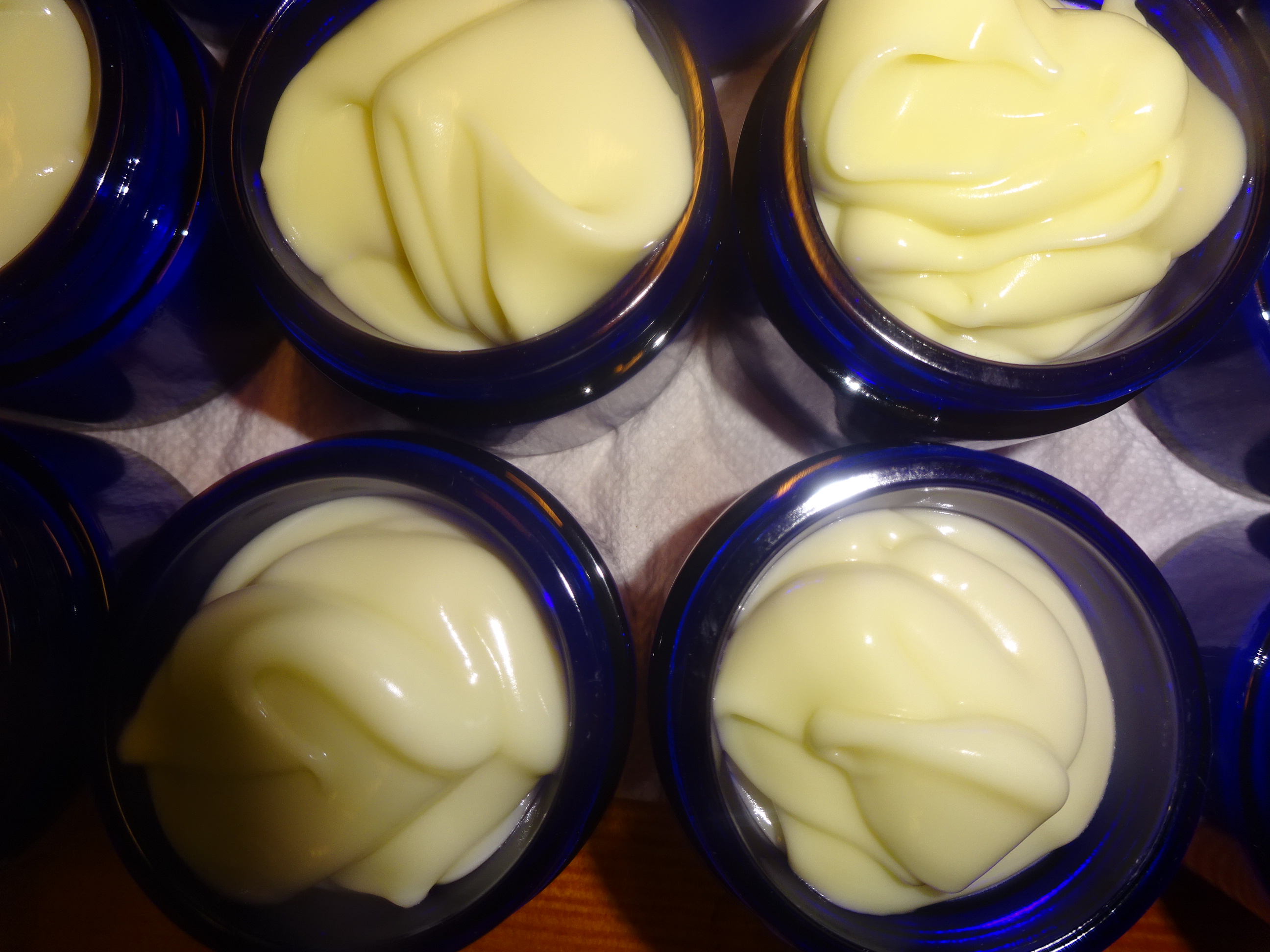 40 g Sheabutter, 20g Hafer,- 10g Sonnenblumenöl, (hat viel Vit. E) 1 ML Sanddornfruchtfleischöl, 10 ml Aloegel, 5 Tr. natürliches Parfumöl Ihrer Wahl.