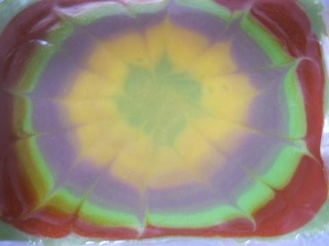 300g Palm-250g Kokosfett, 400g Olivenöl, 270g Wasser, 140g Lauge, 20 ml äth. Orangen,-10ml Rosmarin-5g Salbeiöl, 2-4 EL Ringelblumenblüten